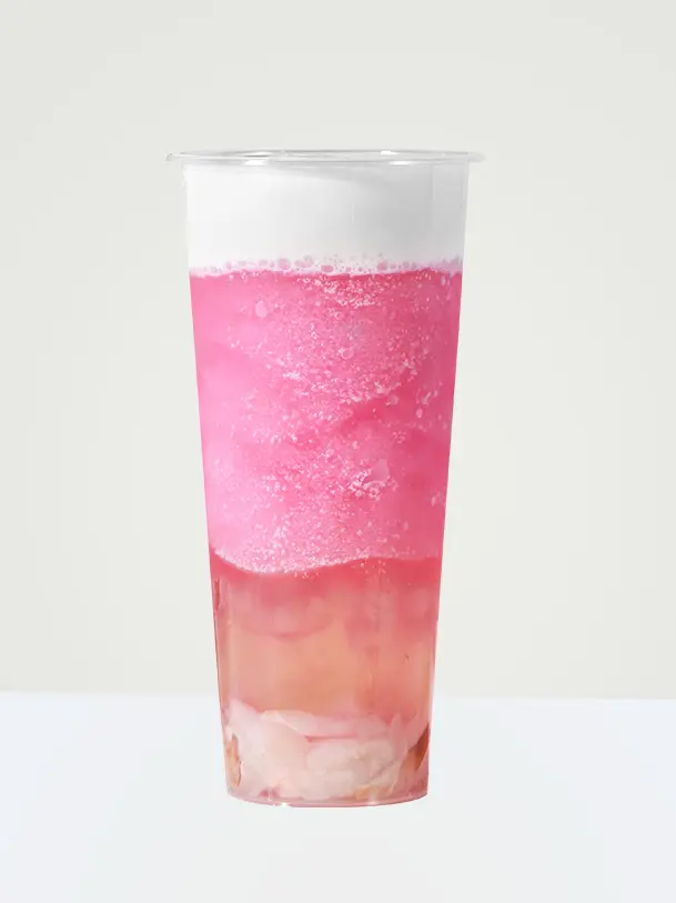 维果多荔枝果萃45g(2勺)、火龙果汁5ml、茉莉绿茶200ml、纯进水50ml、冰块250g、冰糖30ml、新鲜荔枝肉50g、桂花冻80g、原味寒天50g